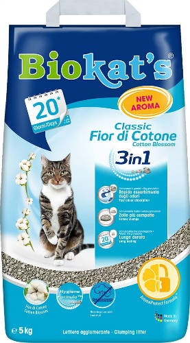 A Biokat's Classic Cotton Blossom 3in1 kiváló minőségű macskaalom, szagmegkötő elemekkel.